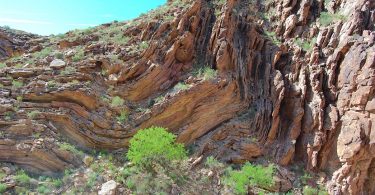 Of course rocks do not bend, well, they do not bend while in their cooled solid state. Bent rock...